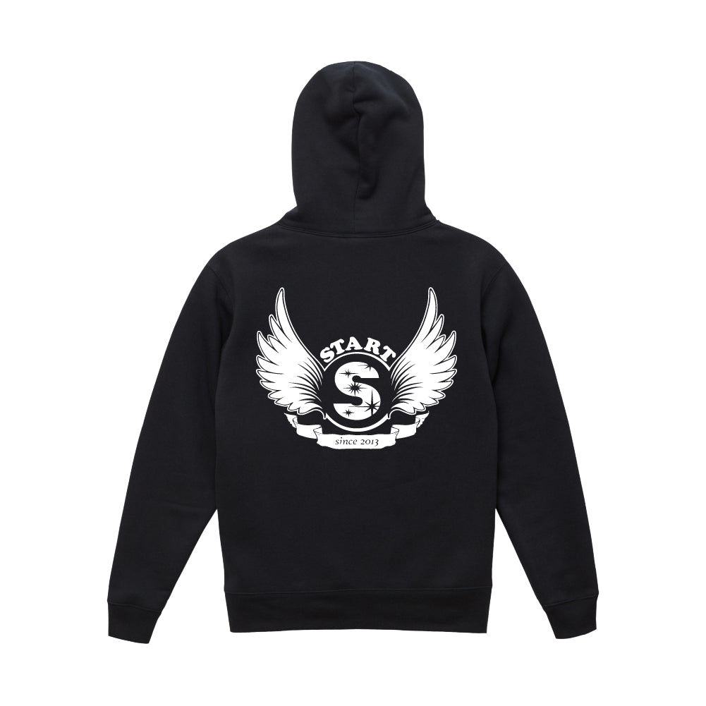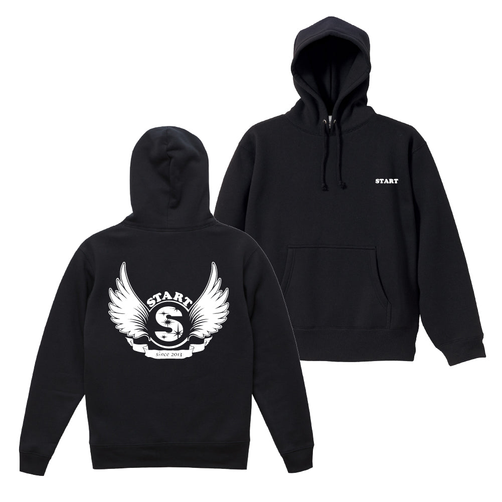 START定番羽根ロゴを背面にプリントした裏起毛プルオーバーパーカーです。