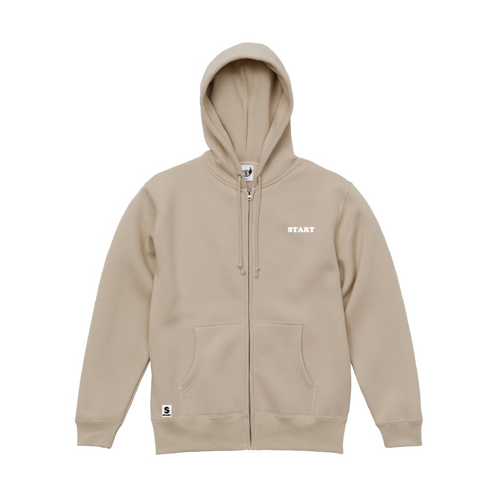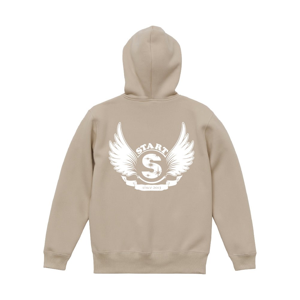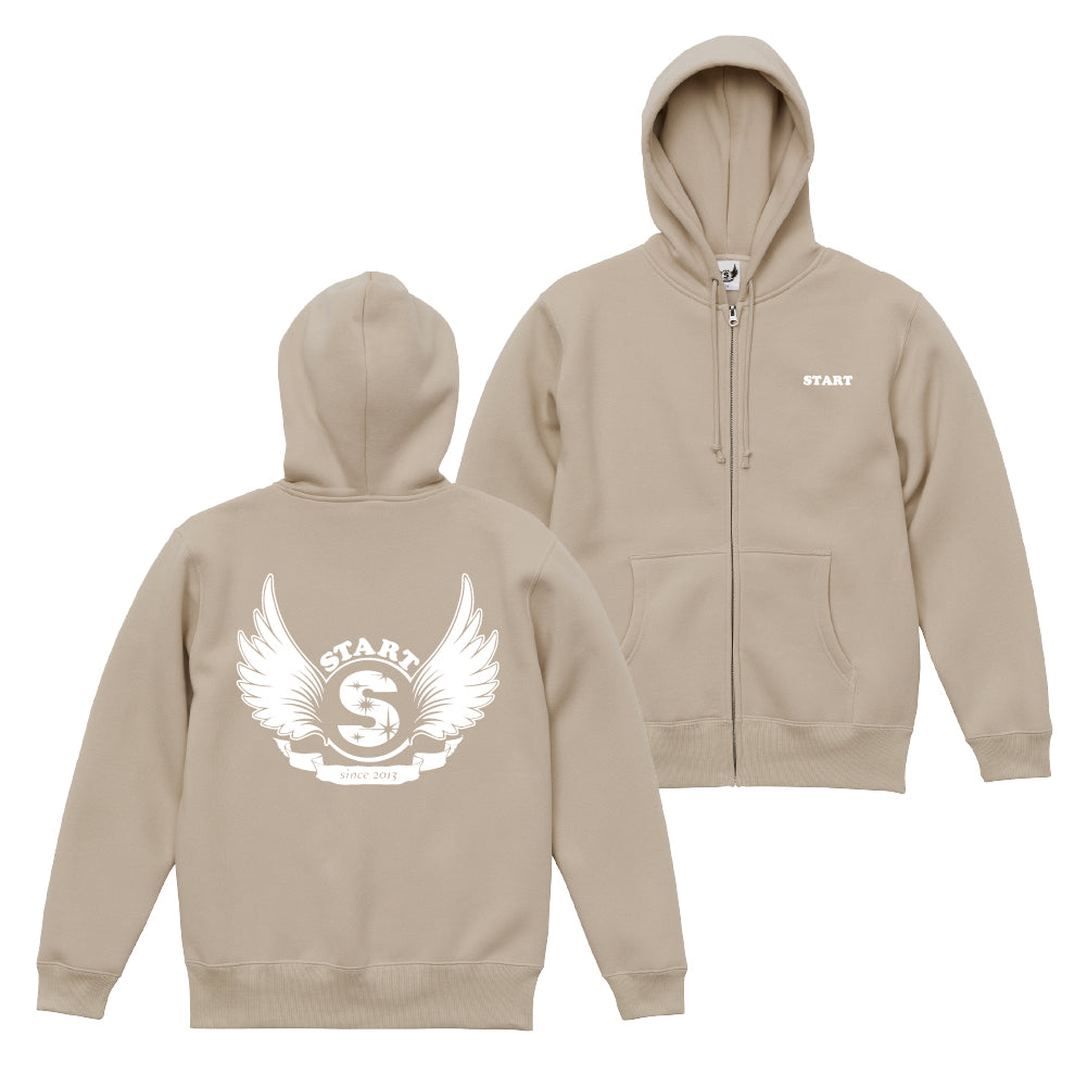 定番のSTART羽根ロゴデザインを背面にプリントした裏起毛フルジップパーカーです。